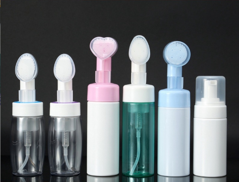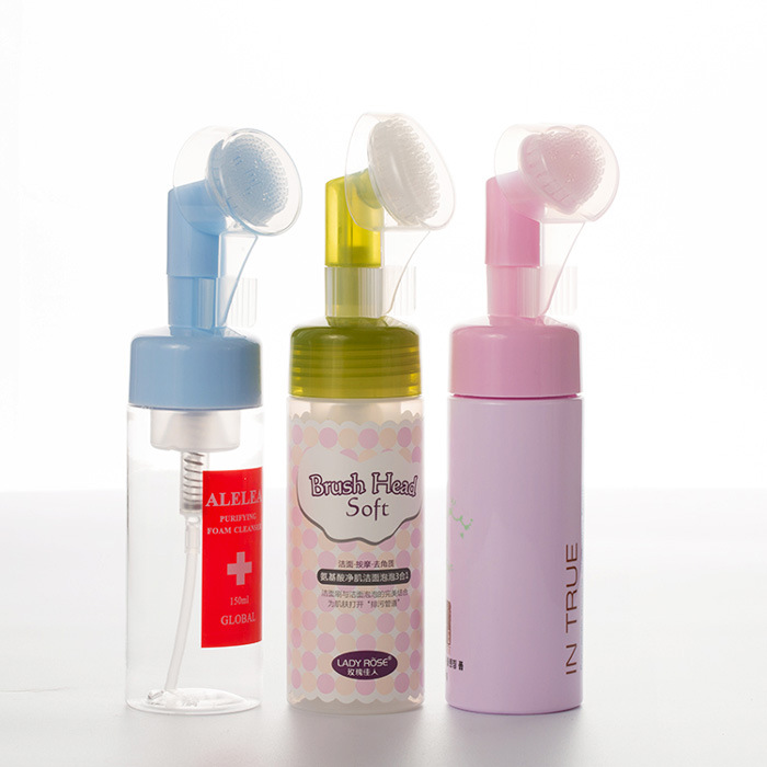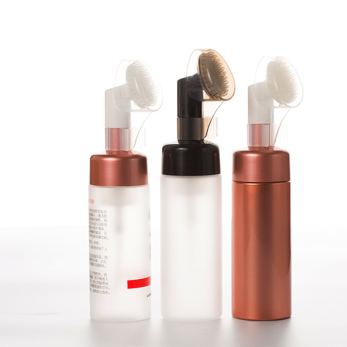 Bottiglia di schiuma con testina in silicone morbido Bottiglia di schiuma detergente per il viso Bottiglia di mousse detergente per il viso con pressa per animali domestici 100 ml 120 ml 150 ml 200 ml, l'umile flacone in schiuma subisce un aggiornamento trasformativo con l'integrazione di una morbida testina in silicone, creando un'esperienza di pulizia del viso unica ed efficace. Questo design innovativo trasforma i detergenti liquidi in una microschiuma ricca e vellutata al momento dell'erogazione, che viene immediatamente applicata e massaggiata sulla pelle attraverso le delicate e igieniche setole in silicone. Gli utenti beneficiano di un processo simultaneo in due fasi: pulizia approfondita aiutata dalla capacità della schiuma di rimuovere le impurità e dalla delicata esfoliazione fisica e stimolazione dei pori della spazzola. It’s ideal for a quick morning refresh or a deep evening cleanse, offering spa-like treatment effortlessly at home, while the inherent non-porous nature of silicone ensures superior hygiene compared to traditional brush materials.