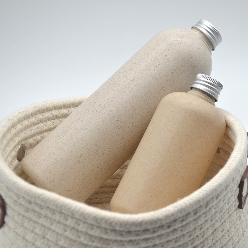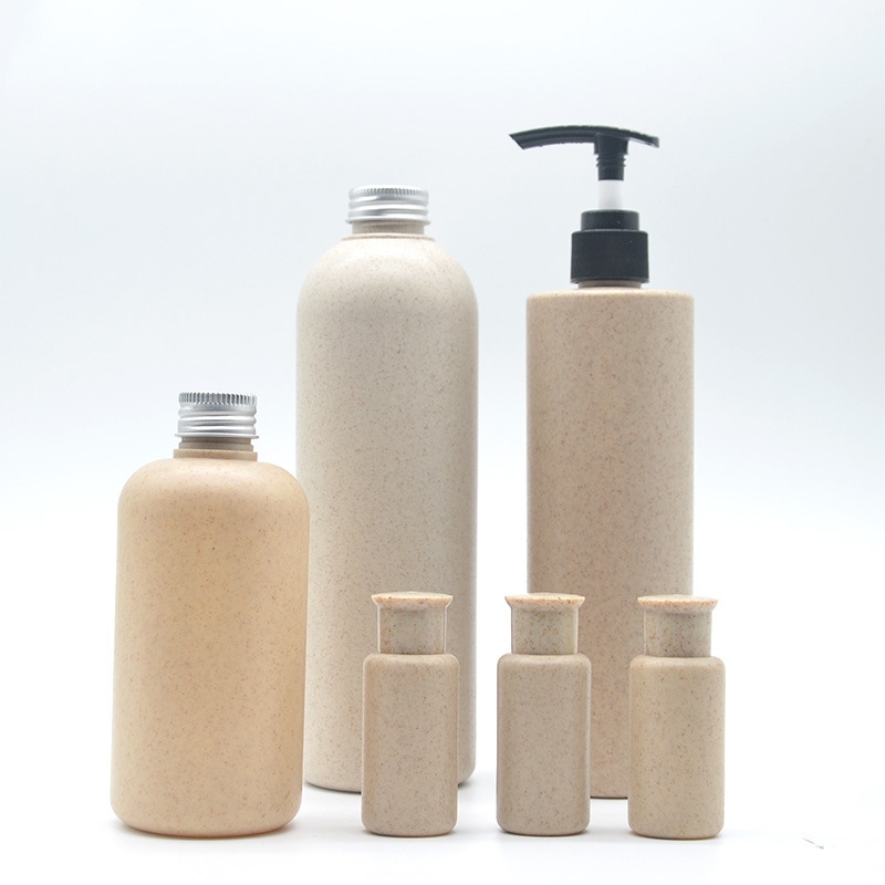 Questo è un cosmetico vuoto da 30 ml 100 ml 250 ml 300 ml 500 ml lozione biodegradabile in paglia di grano, plastica, burro per il corpo, crema per il corpo, bottiglia di shampoo con coperchio, che ha una vasta gamma di applicazioni, utilizzata principalmente in shampoo, gel doccia e altri prodotti per la cura.